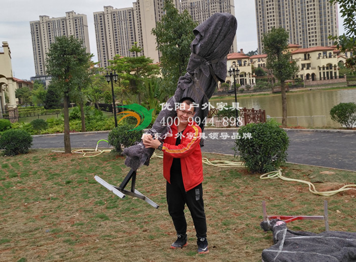 此次园林小品配套主要有:玻璃钢剪影雕塑 、单车雕塑、高尔夫人物雕塑、垃圾桶、沙滩椅、中柱伞、铸铝桌椅等等
