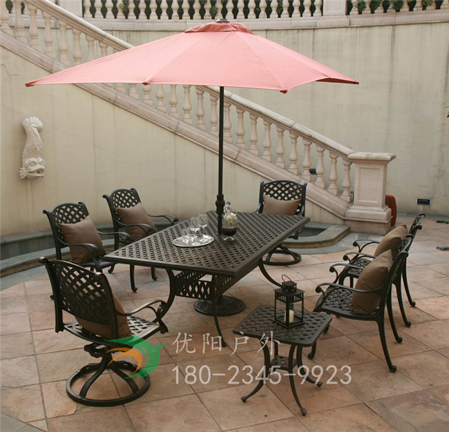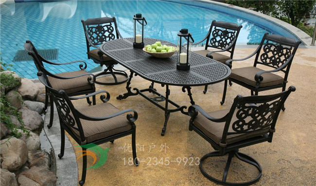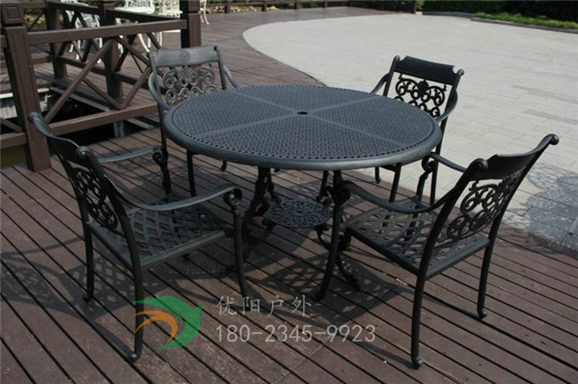 在这里的话优阳户外给您介绍一下我们家的铸铝桌椅。